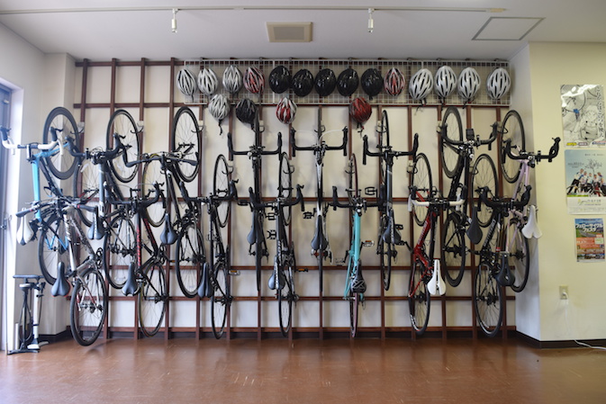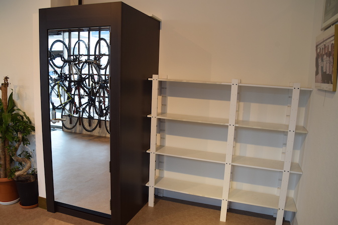 お荷物をお預かりする棚をご用意しておりますのでサイクリング時に使用しないお荷物はこちらに置く事ができます。