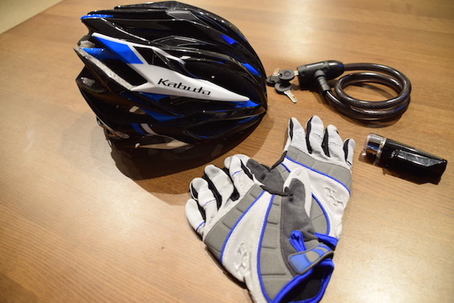 傷害・賠償責任保険付、ヘルメット、グローブ、鍵、ライト、携帯ポンプ・工具、チューブ、サドルバック付